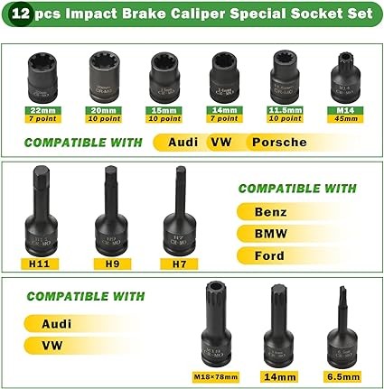 12 Pc Impact Brake Caliper Socket Set, 12 Square Drive, Compatible with AudiVWPorscheBenzFordBMW