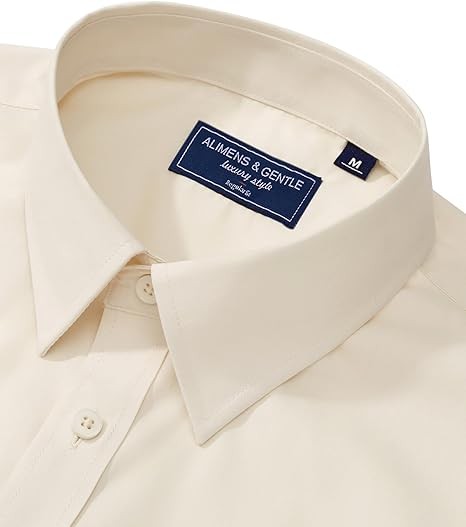 Alimens & Gentle Men's Dress Shirt Regular Fit Stretch Stain Shield Long Sleeve Solid Business Wedding Button Down Shirts