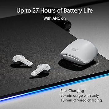 ASUS ROG Cetra True Wireless Gaming Headphones (Low-Latency Bluetooth Earbuds, Active Noise Cancelation, 27-Hour Battery Life, IPX4 Water Resistance, Wireless Charging)- White