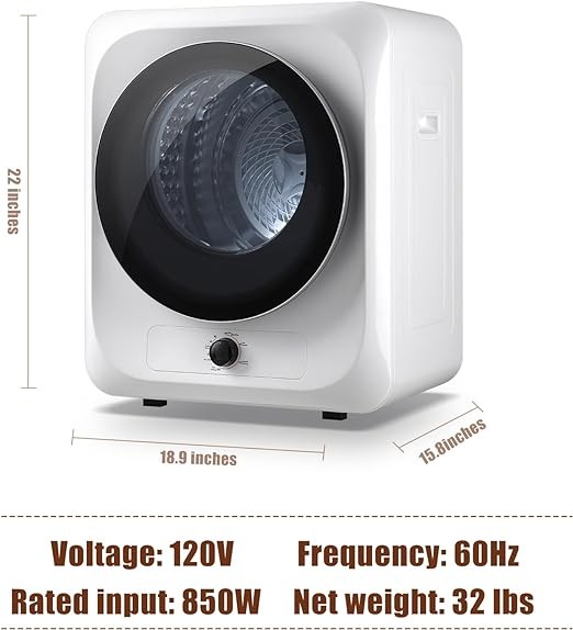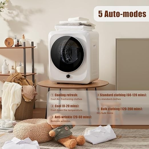 Auertech Portable Clothes Dryer, 850W 10Lbs Compact Laundry Dryer with 5 Drying Modes, Stainless Steel Tub, Easy Knob Control, 1.5 cu.ft Front Load Mini Electric Dryer Machine for Apartment, Home, RV