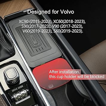 CarQiWireless Wireless Charger for Volvo XC90 S90 V90 XC60 V60 S60 2024 2023 2017-2021 2022, Wireless Phone Charging Pad for Volvo Accessories 2018 2019 2020