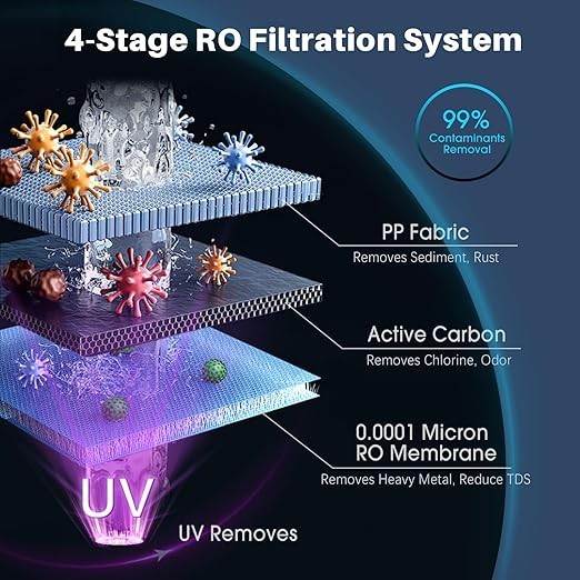 Countertop Instant Hot Water Dispenser, Reverse Osmosis Water Purification System with UV, 5:1 Pure to Drain, 4 Temperature Options, No Installation OM-ROF02
