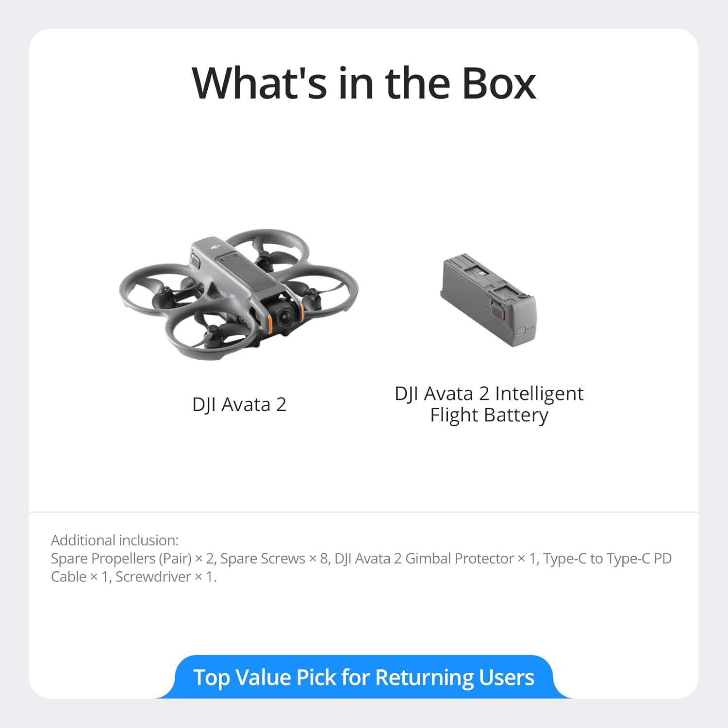 DJI Avata 2 (Drone Only), FPV Drone with Camera 4K, Immersive Flight Experience, Built-in Propeller Guard, Easy Flip/Roll, Super-Wide 155° FOV, Compatible with RC Motion 3, FAA Remote ID Compliant