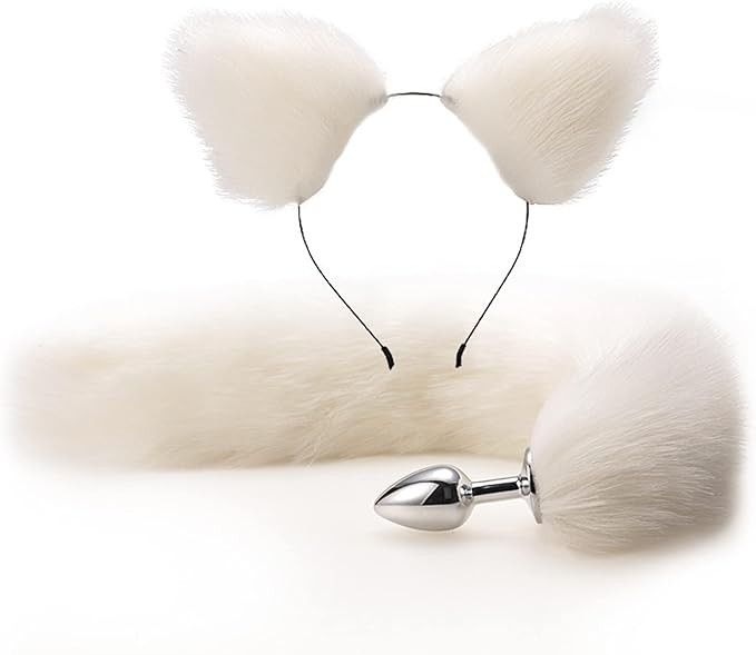 Fox Tail Anal Plug with Hairpin Toy Flirting Metal Butt Plug Tail Sex Toys for Woman Man Couples Cosplay Adult Game Shop (Color : White)