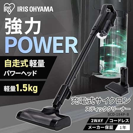 Iris Ohyama SCD-184P-B Vacuum Cleaner, Cordless Stick Cleaner, Cyclone, Popular, Black