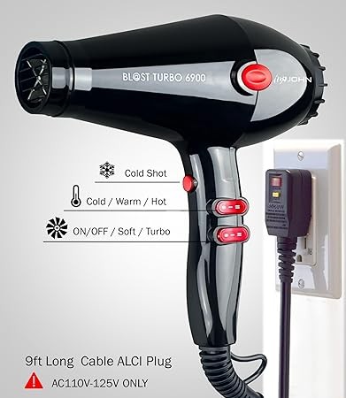 JOHN Professional Ionic Salon Hair Dryer 2200W, Powerful Hair Blow Dryer, 5X Fast Drying, Blast Turbo 6900, Black