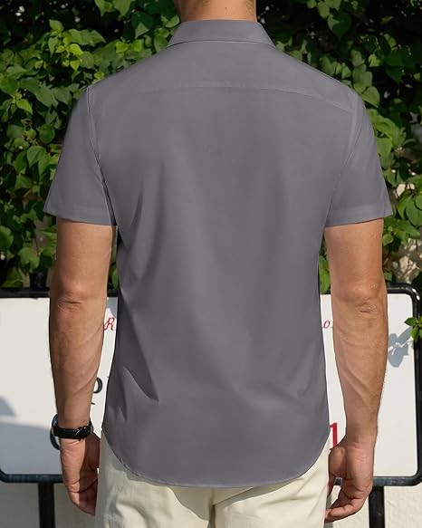 J.VER Men's Short Sleeve Dress Shirts Stretch Stain Shield Casual Button Down Shirts Solid Formal Shirt