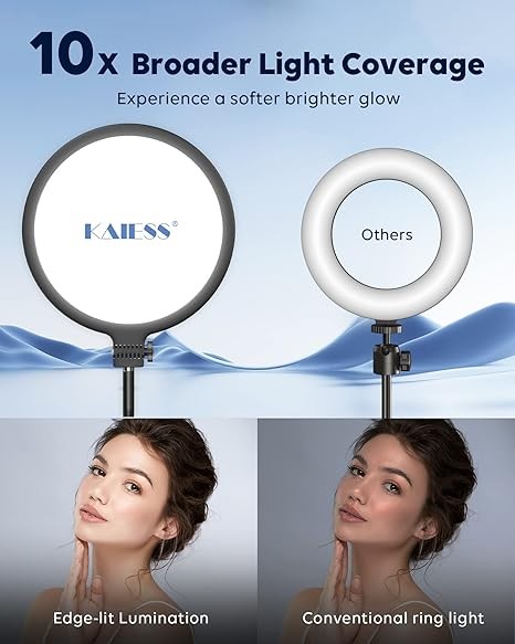 Kaiess 10.5" Desk Ring Light with Stand, Full-Screen Ring Light for Desk with Phone Holder, Desktop Laptop Ring Light for Video Recording, Zoom Lighting for Computer, Live Streaming, Video Conference