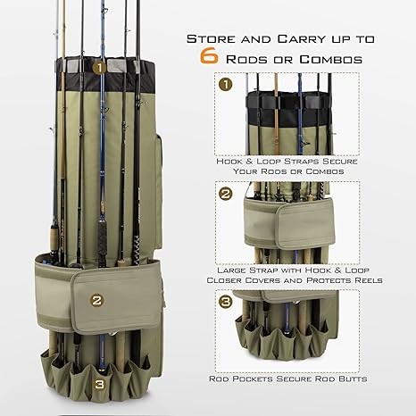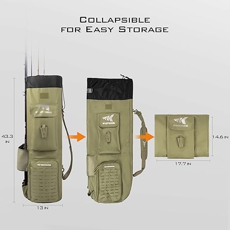 KastKing Karryall Fishing Rod Bag,81L Large Storage Water-resistant Rod Case Holds 6 Rods & Reels,Foldable Fishing Bag Accommodate Fishing Gear and Equipment,Fishing Gifts for Men,Khaki