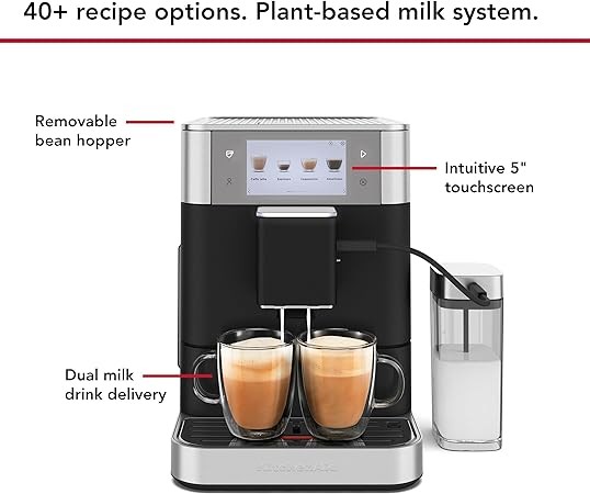 KitchenAid Fully Automatic Espresso Machine KF8 with Milk Attachment & Plant Based Milk Options, KES8558BK, Cast Iron Black