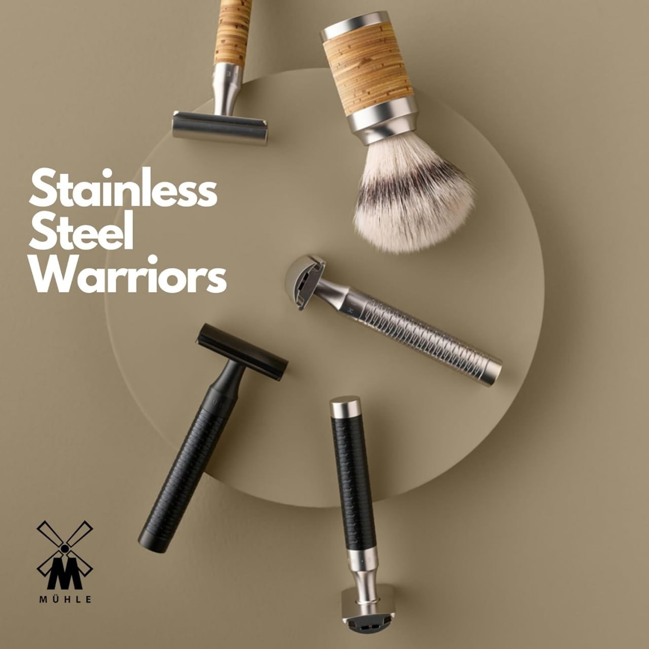MÜHLE Rocca Traditional Safety Razor - Jet Black Closed Comb Safety Razor - Black Stainless Steel Handle