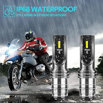 P15D H6M Motorcycle Headlight Bulbs Super Bright Compatible with ATVS, Yamaha, Honda, Kawasaki, Suzuki YFM350 400 450 660 700 Raptor, High Low Beam, Pack of