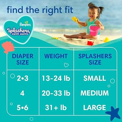 Pampers Splashers Swim Diapers - Size S, 20 Count, Gap-Free Disposable Baby Swim Pants