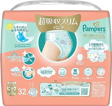 [Pants Big Size] Pampers Diapers, Best for Skin, Ultra Absorbent, Slim Pants 26.6 - 48.5 lbs (12 - 22 kg), 128 Sheets (32 Sheets x 4 Pack) [Case Products]
