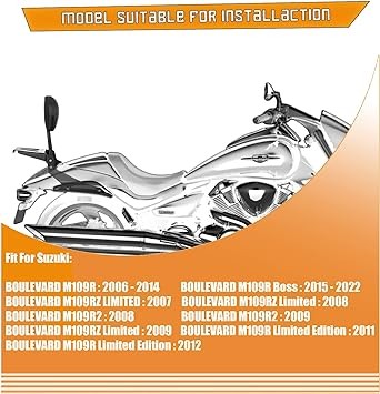 Powersports Sissy Bar with Backrest Luggage Rack for Suzuki Boulevard M109 R with Docking Hardware(Black,Non-Studded)