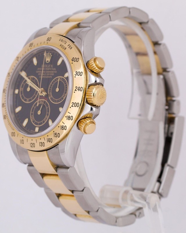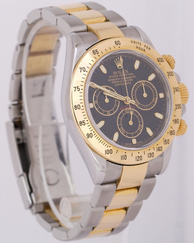 Rolex Daytona Cosmograph 40mm BLACK Two-Tone 18K Yellow Gold Steel 116523 Watch