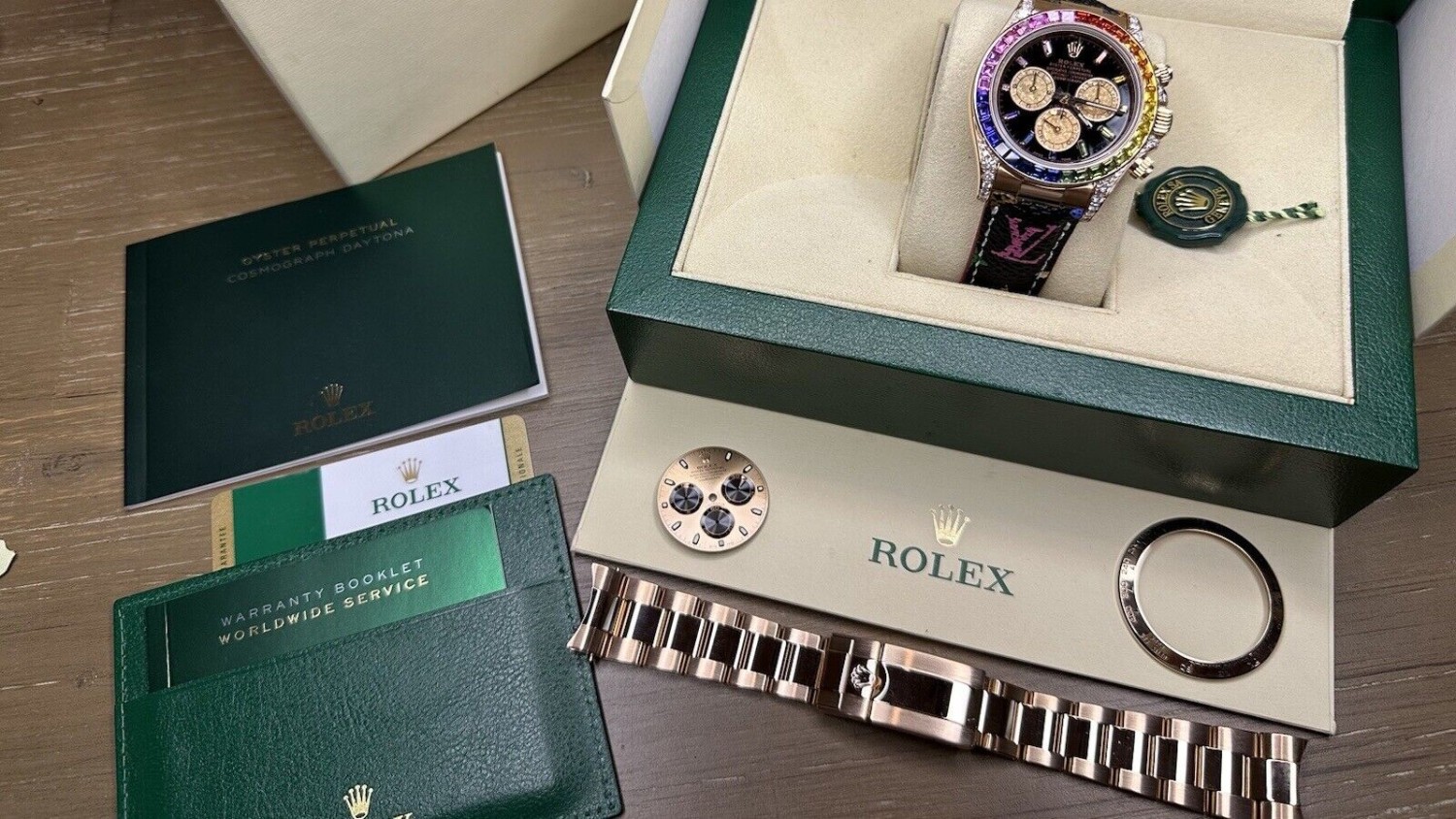 Rolex Rose Gold 116505 Daytona 116595RBOW Rainbow Sapphire Bezel Diamond Lugs
