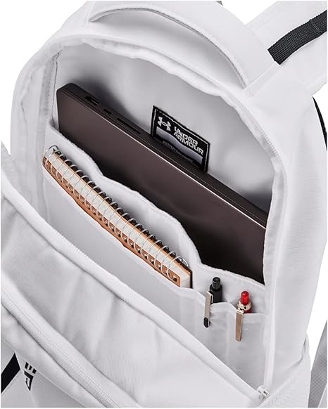 Under Armour Unisex-Adult Hustle 6.0 Backpack, (100) White/White/Black, One Size Fits Most