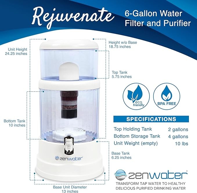 Zen Water Systems Countertop Filtration and Purification System, 6-Gallon
